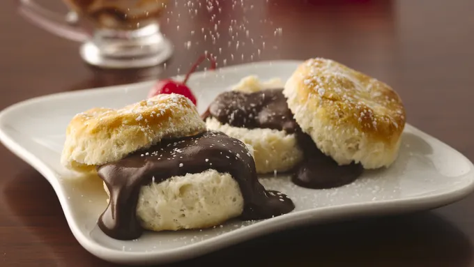 Smother buttery Pillsbury™ Grands!™ frozen buttermilk biscuits in a hearty Sausage-Apple Gravy for a comforting meal you can make in 30 minutes. These biscuits with apple gravy are bursting with sweet and savory flavor. Introduce your family to this warm meal next time you need a hassle-free start to your day.