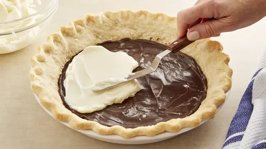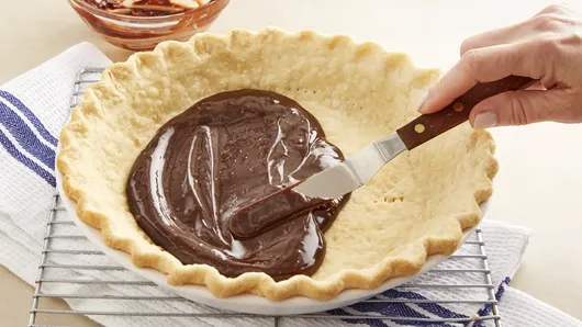 Step1Heat oven to 450°F. Make pie crust as directed on box for One-Crust Baked Shell using 9-inch glass pie pan. Bake 9 to 11 minutes or until lightly browned. Cool completely, about 15 minutes.