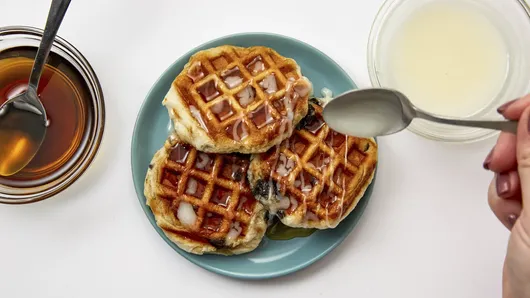 var configuration = {"title":"Blueberry Biscuit Waffles","introduction":"Add some \u0022wow!\u0022 to your weekend with these easy three-ingredient biscuit waffles. Start with Pillsbury™ Blueberry flavored Sweet Biscuits with Icing, cook them in a waffle maker and pile on your favorite toppings. Everyone will come running to the kitchen when they know what\u0027s for breakfast!","servingSize":"2 Waffles","image":{"small":{"media":"(min-width: 0px)","src":"https://mojo.generalmills.com/api/public/content/YG56V_n4CkKe9zv5Gmc5NA_webp_base.webp?v=4c66d61d\u0026t=e724eca7b3c24a8aaa6e089ed9e611fd"},"medium":{"media":"(min-width: 500px)","src":"https://mojo.generalmills.com/api/public/content/YG56V_n4CkKe9zv5Gmc5NA_webp_base.webp?v=4c66d61d\u0026t=191ddcab8d1c415fa10fa00a14351227"},"large":{"media":"(min-width: 767px)","src":"https://mojo.generalmills.com/api/public/content/YG56V_n4CkKe9zv5Gmc5NA_webp_base.webp?v=4c66d61d\u0026t=191ddcab8d1c415fa10fa00a14351227"},"alt":"Blueberry Biscuit Waffles"},"contributor":{"label":"By","name":"Pillsbury Kitchens","profileUrl":"/about-us","displayDate":{"label":"Updated","date":"Apr 20, 2022"}},"ingredientGroups":[{"ingredients":[{"quantity":"","description":"Vegetable oil"},{"quantity":"1","description":"can (12.4 oz) refrigerated Pillsbury™ Blueberry flavored Sweet Biscuits with Icing (8 Count)","productLink":"/products/biscuits/sweet-biscuits/sweet-biscuits-blueberry"},{"quantity":"1/4","description":"cup real maple syrup"},{"quantity":"3/4","description":"cup fresh blueberries"}]}],"steps":[{"description":"Heat waffle maker; grease generously with oil. Separate dough into 8 biscuits; set icing aside.","stepShotImageUrl":"//mojo.generalmills.com/api/public/content/EET8gK1vKUGnetwq-SnWlA_webp_base.webp?v=06f26ffe\u0026t=51a43a57af4046789e5a7f20567b1195"},{"description":"Place 2 biscuits at a time on hot waffle maker. Close lid of waffle maker; bake 2 to 3 minutes or until light golden brown. Carefully remove waffles. Repeat with remaining biscuits, greasing waffle maker between each set.","stepShotImageUrl":"//mojo.generalmills.com/api/public/content/3ogKo7mYG0agt5Dhh0m-DA_webp_base.webp?v=e905514f\u0026t=51a43a57af4046789e5a7f20567b1195"},{"description":"In small microwavable bowl, microwave icing uncovered on High 5 to 10 seconds or until thin enough to drizzle. Drizzle waffles with icing and maple syrup. Top with blueberries; serve warm.","stepShotImageUrl":"//mojo.generalmills.com/api/public/content/9-LNquz8KkK0K1cQgt3k1A_webp_base.webp?v=5e51d4b2\u0026t=51a43a57af4046789e5a7f20567b1195"}],"tips":[{"title":"","description":"We found a Belgian-style waffle maker (with larger grates) works best for waffling biscuits.","category":"Techniques","tipShots":[]},{"title":"","description":"Be sure to grease waffle maker between batch of waffles to help prevent biscuits from sticking and burning. Cleanup is a breeze when you wrap a paper towel around the end of a wooden kitchen utensil, like the wooden handle of a spatula. Carefully push paper towel through waffle grates to help clean up any residue from baking.","category":"Techniques","tipShots":[]},{"title":"","description":"Keep cooked waffles on a cookie sheet in your oven on the \u0022warm\u0022 setting while you finish making all the waffles. If you don\u0027t have a warm setting, set the oven to 200°F.","category":"Techniques","tipShots":[]},{"title":"","description":"Get creative with your toppings! Dress up your waffles with other favorite fruits, such as raspberries or sliced strawberries, or add a dollop of yogurt or whipped topping.","category":"Variation","tipShots":[]},{"title":"","description":"After waffling, cut each biscuit into 3 strips to create “waffle dippers” that would make a fun and “dippable” kid breakfast. Choose a variety of dips that could be served alongside, such as the icing, syrup, yogurt and other fun toppings like sprinkles or mini chocolate chips.","category":"Serving Suggestions/Menu","tipShots":[]},{"title":"","description":"Kitchen Tested - 5/2019","category":"Kitchen Tested","tipShots":[]}],"kitchenTips":[{"title":"","description":"We found a Belgian-style waffle maker (with larger grates) works best for waffling biscuits.","category":"Techniques","tipShots":[]},{"title":"","description":"Be sure to grease waffle maker between batch of waffles to help prevent biscuits from sticking and burning. Cleanup is a breeze when you wrap a paper towel around the end of a wooden kitchen utensil, like the wooden handle of a spatula. Carefully push paper towel through waffle grates to help clean up any residue from baking.","category":"Techniques","tipShots":[]},{"title":"","description":"Keep cooked waffles on a cookie sheet in your oven on the \u0022warm\u0022 setting while you finish making all the waffles. If you don\u0027t have a warm setting, set the oven to 200°F.","category":"Techniques","tipShots":[]},{"title":"","description":"Get creative with your toppings! Dress up your waffles with other favorite fruits, such as raspberries or sliced strawberries, or add a dollop of yogurt or whipped topping.","category":"Variation","tipShots":[]},{"title":"","description":"After waffling, cut each biscuit into 3 strips to create “waffle dippers” that would make a fun and “dippable” kid breakfast. Choose a variety of dips that could be served alongside, such as the icing, syrup, yogurt and other fun toppings like sprinkles or mini chocolate chips.","category":"Serving Suggestions/Menu","tipShots":[]}],"additionalContent":[],"faq":[],"tipCategories":[{"categoryName":"Kitchen Tested","heading":"More About This Recipe","cssClass":"recipePartStory","expandOnInit":false,"expandText":"More +","collapseText":"Less -","expandEventName":"","collapseEventName":"","image":"","tips":[{"title":"","description":"Kitchen Tested - 5/2019","category":"Kitchen Tested","tipShots":[]}],"isExpandable":false}],"nutritionInfo":{"configuration":{"showAsTable":false,"noNutritionInformatio