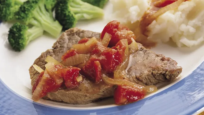 - 3/4 lb. boneless beef round steak (1/2 inch thick), cut into 4 pieces
