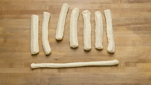 Step1Heat oven to 350°F. Lightly spray cookie sheet with cooking spray. Remove dough from can. Cut dough in half crosswise; cut each half lengthwise into quarters. Cut each quarter in half lengthwise. Roll and stretch each piece to 12-inch-long rope. Tie rope into knot.