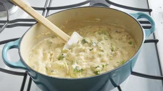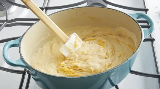 Step5Turn off heat; add remaining cheese. Stir to melt cheese.