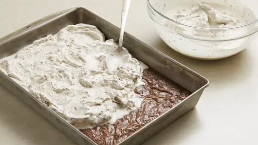 Step1Heat oven to 350°F. Bake brownies as directed on box in 13x9-inch pan. Cool completely, about 30 minutes.