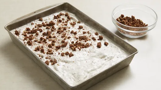 Step4Sprinkle evenly with chopped granola bars; press lightly into ice cream.