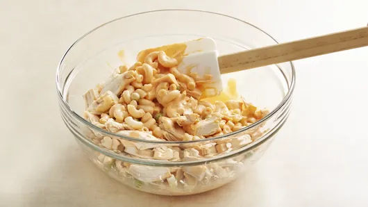 Step2Meanwhile, in large bowl, mix ranch dressing, wing sauce and seasoning (from Suddenly Pasta Salad box). Add chicken and cooled pasta; toss to coat.