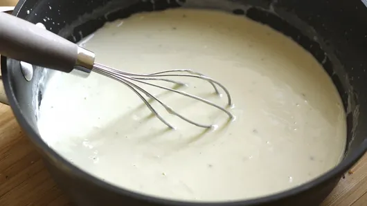 Step3In 2-quart saucepan, melt 2 tablespoons unsalted butter over medium heat; add 2 tablespoons all-purpose flour. Beat with whisk; cook 1 minute. Beat in 2 cups whole milk. Heat to boiling; reduce heat to simmering. Cook until sauce thickens, stirring frequently. Stir in 4 oz crumbled blue cheese until melted. Season to taste with salt and pepper.