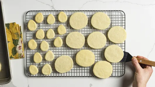 Bake 8 to 12 minutes or until edges are light golden brown. Cool 1 minute; remove from baking sheets to cooling racks. Cool completely, about 15 minutes.