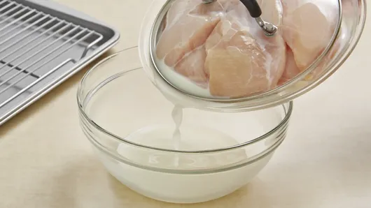Step1In large bowl, place chicken and buttermilk; toss to coat. Refrigerate at least 30 minutes, but no longer than 8 hours.