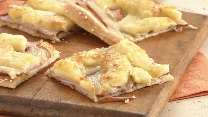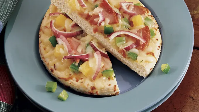 Chunks of pineapple add a juicy tropical twist to the Canadian bacon and provolone cheese flavors in this family-pleasing pizza.