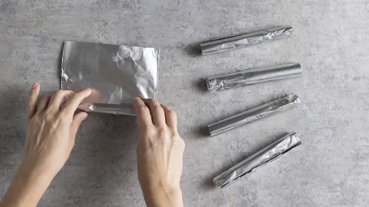Heavy-duty foil is easy to roll into tubes that are the perfect size needed to form the cannoli shells. It is sturdier that regular foil and will help the tubes keep their shape. The cannoli molds are easy to make by cutting 12-inch squares of foil, folding in half and rolling up. Be sure to generously spray with cooking spray to prevent sticking.