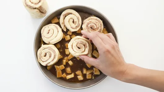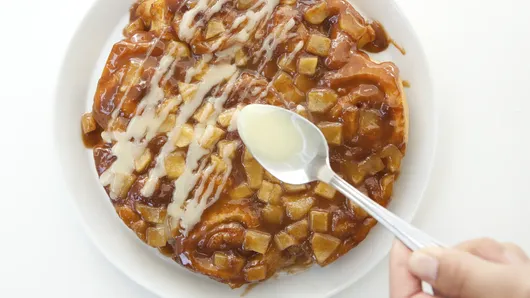 Add some fall flair to your favorite cinnamon rolls with a warm caramel-apple topping—it’s the perfect way to use extra apples from the apple orchard and to get the whole family gathered around the table for breakfast.