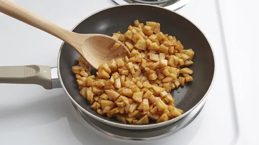 Step2In 10-inch nonstick skillet, cook apples, 1/4 cup of the brown sugar and the cinnamon over medium-high heat 5 to 7 minutes, stirring occasionally, until crisp-tender and most of the liquid is absorbed.