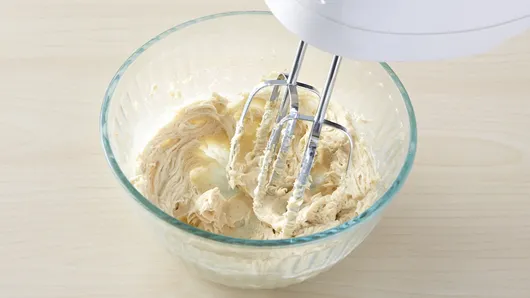 Step3Meanwhile, in medium bowl, beat cream cheese and remaining 1/4 cup brown sugar with electric mixer on medium speed 30 to 60 seconds or until smooth and creamy.