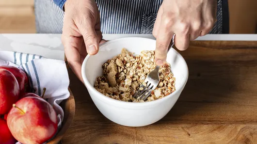 Step2Meanwhile, cut remaining 1/4 cup butter into small pieces. In medium bowl, mix butter, oats, brown sugar and pecans with fork until crumbly; set aside.