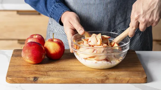 Step1Heat oven to 350°F. Grease 13x9-inch (3-quart) baking dish with shortening or cooking spray. In 12-inch skillet, melt 1/4 cup of the butter over medium-high heat. Add apples; cook 10 to 12 minutes, stirring frequently, until softened and beginning to brown. Remove from heat.