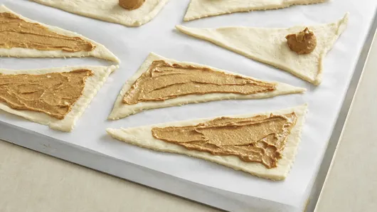 Step2Separate dough into 8 triangles. Spread heaping teaspoon of filling on each triangle, leaving 1/4-inch border.