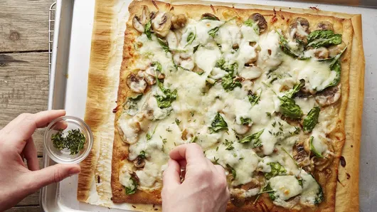 var configuration = {"title":"Caramelized Onion and Mushroom Pizza","introduction":"Make a vegetarian pizza that\u0027s next level. With sweet caramelized onions, savory mushrooms, and two types of cheese, this delicious dish comes together fast and flies off the table even faster. No fussy dough rolling here, Pillsbury™ Thin Crust Pizza Crust does all the heavy lifting so you can have your Caramelized Onion and Mushroom Pizza ready to go in no time. Try this mushroom onion pizza for a fun way to make a vegetarian pizza at home.","servingSize":"1 Serving","image":{"small":{"media":"(min-width: 0px)","src":"https://mojo.generalmills.com/api/public/content/wD7NsIdAa0-p-uwoVVrMvg_webp_base.webp?v=88a938e2\u0026t=e724eca7b3c24a8aaa6e089ed9e611fd"},"medium":{"media":"(min-width: 500px)","src":"https://mojo.generalmills.com/api/public/content/wD7NsIdAa0-p-uwoVVrMvg_webp_base.webp?v=88a938e2\u0026t=191ddcab8d1c415fa10fa00a14351227"},"large":{"media":"(min-width: 767px)","src":"https://mojo.generalmills.com/api/public/content/wD7NsIdAa0-p-uwoVVrMvg_webp_base.webp?v=88a938e2\u0026t=191ddcab8d1c415fa10fa00a14351227"},"alt":"Caramelized Onion and Mushroom Pizza"},"contributor":{"label":"By","name":"Pillsbury Kitchens","profileUrl":"/about-us","displayDate":{"label":"Updated","date":"Jun 4, 2021"}},"ingredientGroups":[{"ingredients":[{"quantity":"1","description":"tablespoon butter"},{"quantity":"1","description":"cup thinly sliced onion"},{"quantity":"2","description":"cups sliced mushrooms (6 oz)"},{"quantity":"2","description":"cloves garlic, chopped"},{"quantity":"1","description":"can (11 oz) refrigerated Pillsbury™ Thin Crust Pizza Crust"},{"quantity":"1","description":"tablespoon olive oil"},{"quantity":"1","description":"cup baby spinach leaves, slightly packed"},{"quantity":"1 1/2","description":"cups shredded mozzarella cheese (6 oz)"},{"quantity":"1/4","description":"cup shredded Parmesan cheese"},{"quantity":"1","description":"teaspoon chopped fresh thyme leaves"}]}],"steps":[{"description":"Spray 15x10-inch or larger dark or nonstick cookie sheet with cooking spray. Heat oven to 400°F (425°F for all other pan types). In 10-inch nonstick skillet, melt butter over medium heat. Add onion and 1/4 teaspoon salt; cook 3 to 5 minutes, stirring occasionally, until onion softens. Add mushrooms; cook 5 to 7 minutes or until softened and browned. Stir in garlic; remove from heat.","stepShotImageUrl":"//mojo.generalmills.com/api/public/content/Vxl_9V1rr0qDD9k5zcFWQg_webp_base.webp?v=9a03f19f\u0026t=51a43a57af4046789e5a7f20567b1195"},{"description":"Unroll dough on pan; starting at center, press dough into 15x10-inch rectangle. Brush with olive oil. Bake 8 minutes. ","stepShotImageUrl":"//mojo.generalmills.com/api/public/content/o7AX0r1dlkmnOUVv8zdbqg_webp_base.webp?v=cf89c133\u0026t=51a43a57af4046789e5a7f20567b1195"},{"description":"Spread mushroom mixture evenly over dough. Top with spinach, mozzarella cheese and Parmesan cheese. Bake 5 to 9 minutes or until crust is golden brown and cheese is melted. ","stepShotImageUrl":"//mojo.generalmills.com/api/public/content/RraexD0VEkG3FJP_BREm9A_webp_base.webp?v=988676f8\u0026t=51a43a57af4046789e5a7f20567b1195"},{"description":"Sprinkle with thyme. To serve, cut into 6 rows by 3 rows.","stepShotImageUrl":"//mojo.generalmills.com/api/public/content/3cjtLvvcBEmNyOmmpmpL-A_webp_base.webp?v=d5add83a\u0026t=51a43a57af4046789e5a7f20567b1195"}],"tips":[{"title":"","description":"We tested with yellow onion, but sweet onion or red onion would also work well in this Caramelized Onion and Mushroom Pizza.","category":"Substitution","tipShots":[]},{"title":"","description":"Plain white button mushrooms work well on this mushroom and onion pizza, but feel free to experiment with your favorite type of mushroom, from baby bellas to shiitakes.","category":"Substitution","tipShots":[]},{"title":"","description":"No fresh thyme? Substitute fresh Italian (flat-leaf) parsley, or leave out the herb garnish entirely.","category":"Substitution","tipShots":[]},{"title":"","description":"\u003cb\u003eCooking Vegetarian?\u003c/b\u003e Always read labels to make sure \u003ci\u003eeach\u003c/i\u003e recipe ingredient is vegetarian. Products and ingredient sources can change.","category":"Health","tipShots":[]},{"title":"","description":"Kitchen Tested - 3/2021.","category":"Kitchen Tested","tipShots":[]}],"kitchenTips":[{"title":"","description":"We tested with yellow onion, but sweet onion or red onion would also work well in this Caramelized Onion and Mushroom Pizza.","category":"Substitution","tipShots":[]},{"title":"","description":"Plain white button mushrooms work well on this mushroom and onion pizza, but feel free to experiment with your favorite type of mushroom, from baby bellas to shiitakes.","category":"Substitution","tipShots":[]},{"title":"","description":"No fresh thyme? Substitute fresh Italian (flat-leaf) parsley, or leave out the herb garnish entirely.","category":"Substitution","tipShots":[]},{"title":"","description":"\u003cb\u003eCooking Vegetarian?\u003c/b\u003e Always read labels to make sure \u003ci\u003eeach\u003c/i\u003e recipe ingredient is vegetarian. Products and ingredient sources can change.","category":"Health","tipShots":[]}],"additionalContent":[],"faq":[],"tipCategories":[{"categoryName":"Kitchen Tested","heading":"More About This Recipe","cssClass":"recipePartStory","expandOnInit":false,"expandText":"More +","collapseText":"Less -","expandEventName":"","collapseEventName":"","image":"","tips":[{"title":"","description":"Kitchen Tested - 3/2021.","category":"Kitchen Tested","tipShots":[]}],"isExpandable":false}],"nutritionInfo":{"configuration":{"showAsTable":false,"noNutritionInformationAvailableMessage":"No nutrition information available for this recipe","poweredByText":"\u003cp\u003eNutrition information for this recipe is estimated using a leading nutrition calculation application, but is an estimate only. Actual nutrition values will va