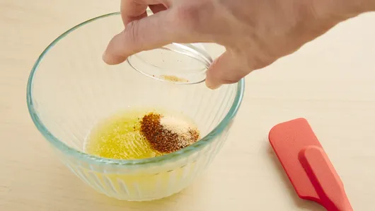 Step1Heat oven to 350°F. In small bowl, stir melted butter, Old Bay™ seasoning and garlic powder until well mixed.