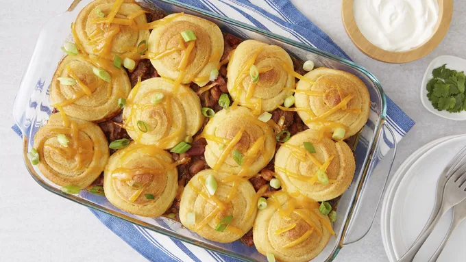 Refrigerated pizza crust holds a cheesy surprise in addition to its chili-fixin' filling.