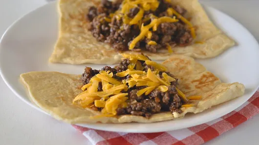 Step4Top each flatbread with 1/2 cup beef mixture and 1/4 cup cheese. Serve immediately.