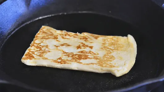Step3Heat separate 10-inch skillet over medium heat. Unroll dough onto cutting board; cut into 4 equal rectangles. Place 1 rectangle in heated skillet; cook on each side 1 minute or until golden brown. Repeat with remaining dough rectangles.