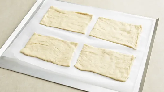 Step3Unroll crescent dough; cut into 4 rectangles, and press each to 6x3 1/2 inches.