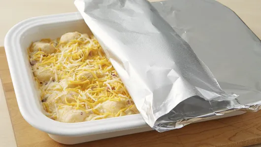 Step4Bake 20 minutes. Remove from oven; top with remaining 1 cup cheese, and cover with foil sprayed with cooking spray. Bake 15 to 20 minutes longer or until golden brown and biscuits are baked through.
