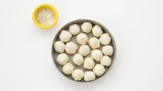 Step2Place 1 meatball half, cut side up, and 1 string cheese piece in center of each dough round. Wrap dough around meatball and cheese, pressing edges to seal. In ungreased 8- or 9-inch round cake pan, place seam side down in single layer.
