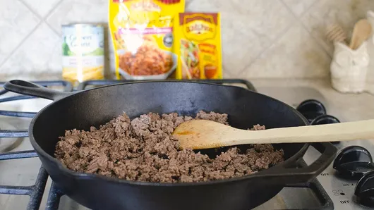 Step1In 10-inch skillet, cook 1 lb lean ground beef over medium-high heat until thoroughly cooked, stirring frequently; drain.
