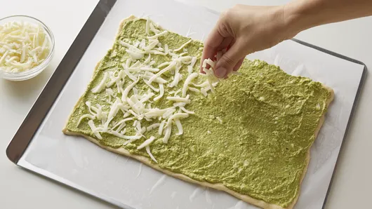 var configuration = {"title":"Cheesy Pesto Crescent Christmas Tree\t","introduction":"If you ever wonder what we\u0027ll be serving as an appetizer for holiday parties, you\u0027re looking at it. This cheesy pesto-filled crescent Christmas tree (with bonus breadsticks baked on the side!) is the perfect shareable snack for everyone to enjoy. Make this your festive contribution to the party food spread, and prepare for all the compliments.","servingSize":"1 Serving","image":{"small":{"media":"(min-width: 0px)","src":"https://mojo.generalmills.com/api/public/content/OH3T21CKk0CPfMyIsQQgSw_webp_base.webp?v=1b0f961e\u0026t=e724eca7b3c24a8aaa6e089ed9e611fd"},"medium":{"media":"(min-width: 500px)","src":"https://mojo.generalmills.com/api/public/content/OH3T21CKk0CPfMyIsQQgSw_webp_base.webp?v=1b0f961e\u0026t=191ddcab8d1c415fa10fa00a14351227"},"large":{"media":"(min-width: 767px)","src":"https://mojo.generalmills.com/api/public/content/OH3T21CKk0CPfMyIsQQgSw_webp_base.webp?v=1b0f961e\u0026t=191ddcab8d1c415fa10fa00a14351227"},"alt":"Cheesy Pesto Crescent Christmas Tree\t"},"contributor":{"label":"By","name":"Pillsbury Kitchens","profileUrl":"/about-us","displayDate":{"label":"Updated","date":"Sep 23, 2019"}},"ingredientGroups":[{"ingredients":[{"quantity":"4 ","description":"oz (from 8-oz package) cream cheese, softened"},{"quantity":"1/2 ","description":"cup refrigerated basil pesto (from 7-oz container) "},{"quantity":"2 ","description":"cans (8 oz) refrigerated Pillsbury™ Original Crescent Dough Sheet ","productLink":"/products/crescents/recipe-creations"},{"quantity":"1 ","description":"cup shredded mozzarella cheese (4 oz)"},{"quantity":"1 ","description":"tablespoon butter, melted "},{"quantity":"1 ","description":"tablespoon grated Parmesan cheese "}]}],"steps":[{"description":"Heat oven to 375°F. Spray 2 large cookie sheets with cooking spray; line with cooking parchment paper. "},{"description":"In medium bowl, mix cream cheese and pesto until well blended. "},{"description":"Unroll 1 can of crescent dough onto 1 of the cookie sheets; reshape dough to 13x8-inch rectangle. Spread cream cheese mixture evenly on top of crescent dough. Sprinkle with mozzarella cheese. ","stepShotImageUrl":"//mojo.generalmills.com/api/public/content/NvWzKHgfPkiZteW2zI7MmA_webp_base.webp?v=97038789\u0026t=51a43a57af4046789e5a7f20567b1195"},{"description":"Unroll second can of dough, and place on top of cheese layer, stretching to cover. With pizza cutter or sharp knife, trim 2 small triangle sections from each of the top sides slightly to form a tree shape. Set dough scraps aside. (After cutting, dough shape should be about 2 1/2 inches wide at the top and 8 inches across the bottom.) ","stepShotImageUrl":"//mojo.generalmills.com/api/public/content/PW4ZljTf1EGrl8IpVrTwrQ_webp_base.webp?v=26a6ed1d\u0026t=51a43a57af4046789e5a7f20567b1195"},{"description":"Using photo as a guide, with pizza cutter or sharp knife, cut dough horizontally completely across in 1-inch strips. Twist each strip a few times, and place down on cookie sheet in tree formation, using photo as a guide. Cut two small sections of dough from the scraps; twist and place next to the bottom of the tree for the trunk. Cut the remaining scraps of dough into four strips; twist into breadsticks, and place on remaining cookie sheet. ","stepShotImageUrl":"//mojo.generalmills.com/api/public/content/GnBsMFK1eUeoWPqEu62P0A_webp_base.webp?v=706d6d71\u0026t=51a43a57af4046789e5a7f20567b1195"},{"description":"Brush top of tree and breadsticks with melted butter, and sprinkle with Parmesan cheese. Bake separately, refrigerating second sheet while first is baking. For the breadsticks: Bake 10 to 12 minutes or until dough is golden brown and cooked all the way through. Cover loosely with foil to keep warm. For the tree: Bake 16 to 21 minutes, or until dough is golden brown and cooked all the way through. "}],"tips":[{"title":"","description":"Spray your cookie sheet with cooking spray before adding parchment paper so parchment paper stays in place when working with dough.","category":"Techniques","tipShots":[]},{"title":"","description":"For best results when cutting dough, use a pizza cutter.\n","category":"Techniques","tipShots":[]},{"title":"","description":"Serve with warm marinara sauce for dipping.","category":"Serving Suggestions/Menu","tipShots":[]},{"title":"","description":"For a cute topper, cut a small star shape out of a red bell pepper, and place on top of tree, using toothpick if necessary.","category":"Presentation/Garnish","tipShots":[]},{"title":"","description":"Kitchen Tested - 8/2019","category":"Kitchen Tested","tipShots":[]}],"kitchenTips":[{"title":"","description":"Spray your cookie sheet with cooking spray before adding parchment paper so parchment paper stays in place when working with dough.","category":"Techniques","tipShots":[]},{"title":"","description":"For best results when cutting dough, use a pizza cutter.\n","category":"Techniques","tipShots":[]},{"title":"","description":"Serve with warm marinara sauce for dipping.","category":"Serving Suggestions/Menu","tipShots":[]},{"title":"","description":"For a cute topper, cut a small star shape out of a red bell pepper, and place on top of tree, using toothpick if necessary.","category":"Presentation/Garnish","tipShots":[]}],"additionalContent":[],"faq":[],"tipCategories":[{"categoryName":"Kitchen Tested","heading":"More About This Recipe","cssClass":"recipePartStory","expandOnInit":false,"expandText":"More +","collapseText":"Less -","expandEventName":"","collapseEventName":"","image":"","tips":[{"title":"","description":"Kitchen Tested - 8/2019","category":"Kitchen Tested","tipShots":[]}],"isExpandable":false}],"nutritionInfo":{"configuration":{"showAsTable":false,"noNutritionInformationAvailableMessage":"No nutrition information available for this recipe","poweredByText":"\u003cp\u003eNutrition information for this recipe is estimated using a leading nutrition calculation applicatio