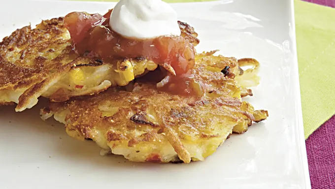 Step1In large bowl, combine potato flakes, corn, Cheddar cheese, flour, cornmeal, seasoned salt, basil, garlic powder and pepper; mix well. Add milk and egg; mix well. Let stand 2 to 3 minutes or until liquid is absorbed.