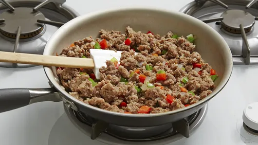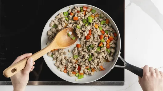 Step1Heat oven to 375°F. Spray 13x9-inch (3-quart) glass baking dish with cooking spray. In 10-inch skillet, brown sausage, onion and bell peppers; drain well.