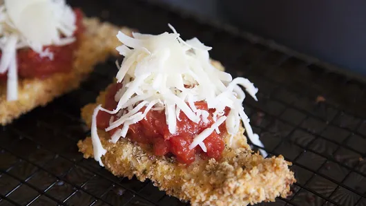 Try a new, lighter twist on classic chicken parmesan. It's an easy, cheesy dinner the fam will love!