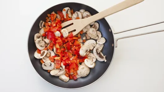Step2In 12-inch skillet, heat oil over medium-high heat. Add mushrooms and bell pepper; cook 4 to 5 minutes, stirring frequently, until mushrooms are tender. Remove from heat; stir in tortellini, pasta sauce and pepperoni; mix well. Spoon mixture into baking dish.