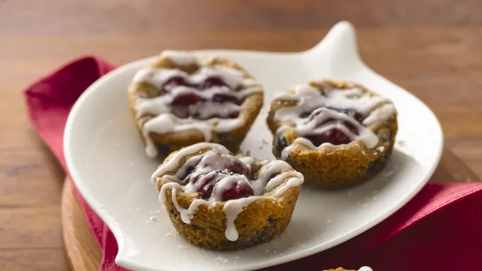 Sweet little cookies in mini cupcake cups have a surprise cherry center! From Melody McGowan, Bake-Off® Monthly Challenge.