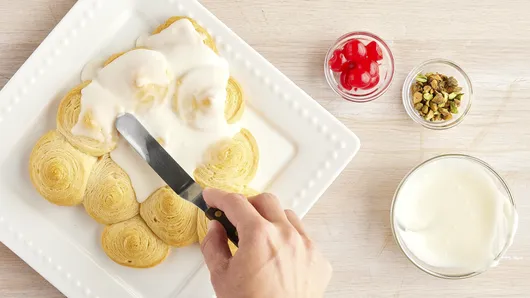 Craving something simple, sweet and fruity? Serve this easy-to-make pistachio and cherry pull-apart crescent treat for a special holiday morning. Pillsbury™ Original Crescent Rolls (arranged in a tree shape if you’re feeling extra festive!) get topped with a rich frosting and “trimmed” with cherries and pistachios. You’re sure to spread some holiday spirit with this fun breakfast roll.