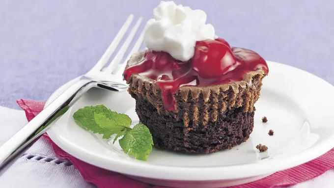 Luscious fudge brownies, cream cheese frosting filling and cherry topping add up to a sinfully delicious dessert!
