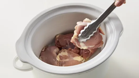 Spray 4- to 5-quart slow cooker with cooking spray. In cooker, place chicken.