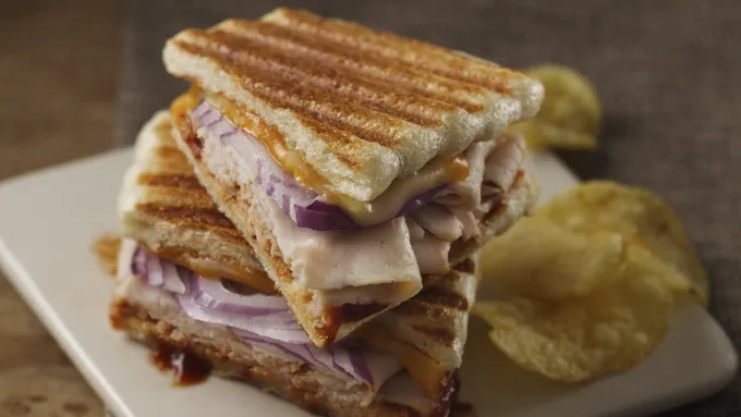 Step4Place 1 to 2 sandwiches on panini maker; close panini maker. Cook 3 to 4 minutes or until golden brown and cheese is melted.