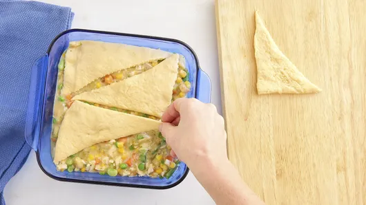 Step4Gently stretch each triangle, and place on top of hot chicken mixture.