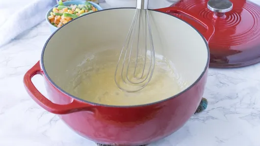Step1In 4-quart pot or Dutch oven, melt 4 tablespoons butter over medium heat; gradually beat in 4 tablespoons all-purpose flour with whisk until mixture is thick and smooth.