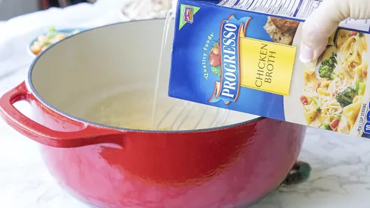 Step2Gradually pour in 1 carton (32 oz) Progresso™ chicken broth and 1/2 cup milk, beating until smooth. Season with salt and pepper. Heat to boiling; reduce heat to medium-low.