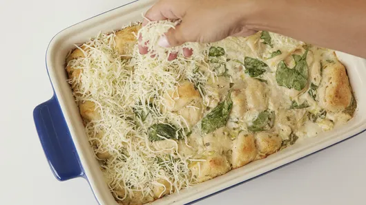 Creamy spinach-artichoke dip gets the casserole treatment in this hearty bubble-up bake that will have even the pickiest eaters asking for seconds.