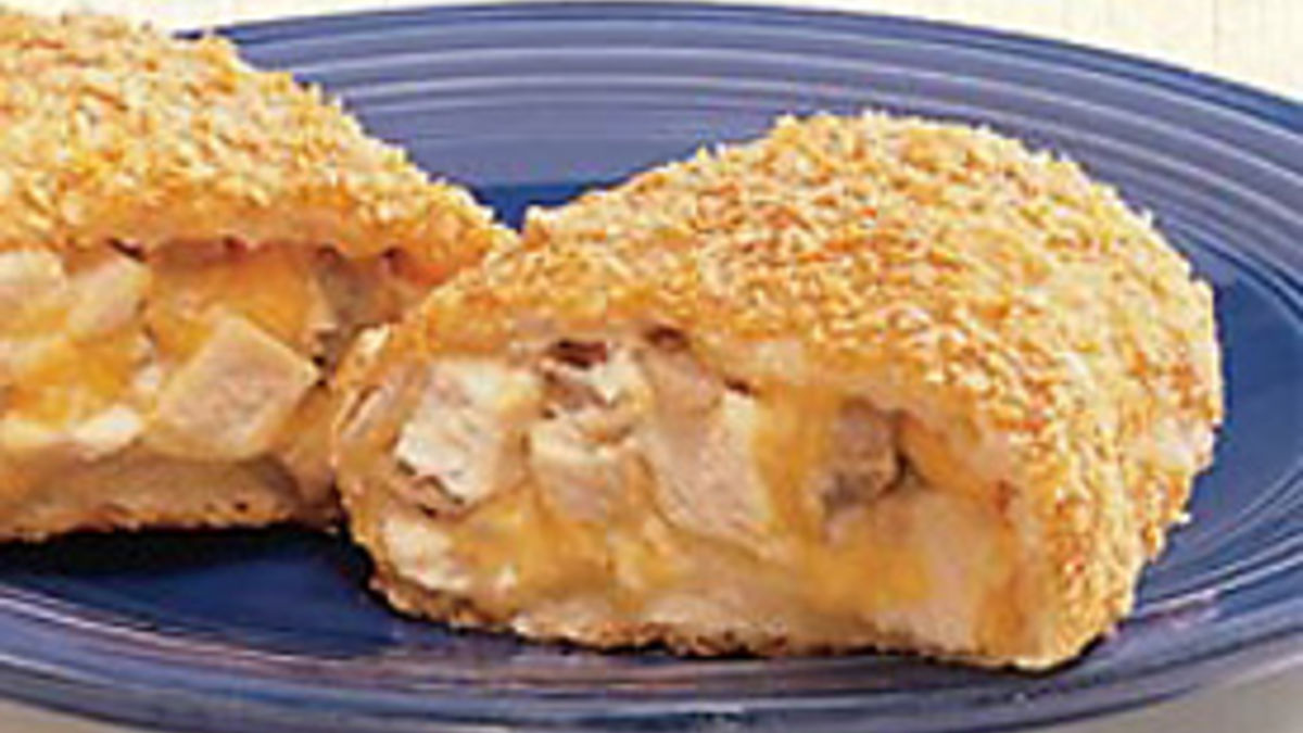 Step2Separate biscuit dough into 8 biscuits. Roll or pat each into 5-inch circle. Place about 1/3 cup chicken mixture on each biscuit circle. Wrap dough around chicken mixture, pressing edges to seal.
