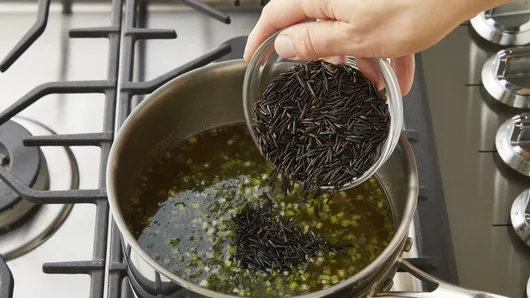 In Dutch oven or large saucepan, combine water and broth. Add wild rice and onions. Bring to a boil. Reduce heat to low; cover and simmer 45 to 55 minutes or until rice is tender.