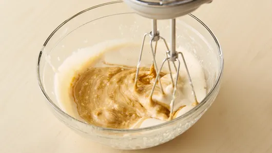 Step2Meanwhile, in small bowl, beat brown sugar, vanilla, cream cheese and egg with electric mixer on medium speed until blended. Add melted butterscotch chips; blend well.