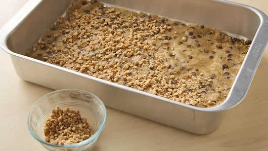 Bake these crunchy chocolate bars packed with toffee bits and butterscotch chips – a delicious dessert.