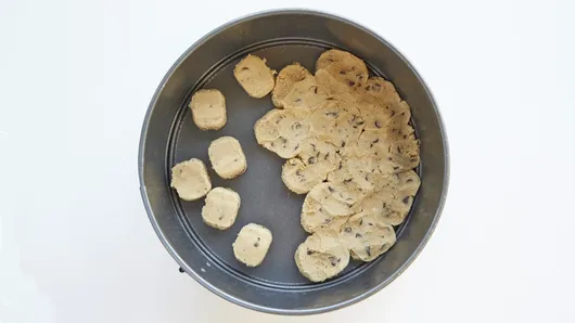 Step2Place 6 cookies in freezer. Press remaining cookie dough in bottom of pan. Set aside.
