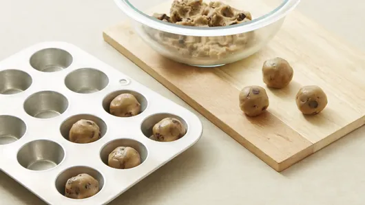 Step2Shape dough into 24 (1 1/4-inch) balls. Place 1 ball in each muffin cup. Bake 8 to 16 minutes or until light golden brown. Do not overbake.