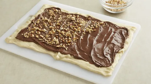 With a quick swipe of prepared hazelnut spread and a scattering of nuts, turn refrigerated crescent rolls into a delicious treat.